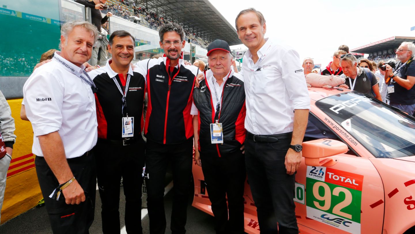 Notching up two more class victories in 2013, Porsche wrote another chapter in the history of the world’s most famous endurance race. The 911 RSR driven by Romain Dumas, Marc Lieb and Richard Lietz won the GTE-Pro class. In the second 911 RSR, their works driver colleagues Joerg Bergmeister, Timo Bernhard and Patrick Pilet made the double victory perfect for Porsche. The customer team IMSA Performance Matmut won the GTE-Am class with drivers Raymond Narac, Christophe Bourret and Jean-Karl Vernay. In 2015, US actor and racing driver Patrick Dempsey narrowly missed out on the GTE-Am class victory at the wheel of the 911 RSR, finishing second with Patrick Long and Marco Seefried.
