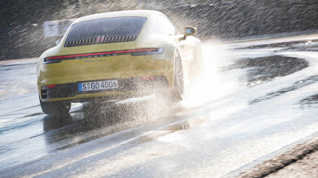 La octava generación del Porsche 911 no sólo es más potente que su predecesora, sino también más confortable y segura. Con el modo Porsche Wet, una primicia mundial incorporada en exclusiva en el 911, este deportivo ofrece un comportamiento aún mejor en carreteras mojadas.