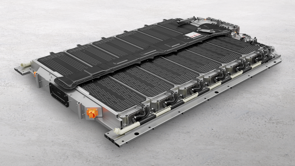 Per ottenere una densità energetica e una capacità di ricarica di livello massimo, Porsche utilizza una batteria agli ioni di litio con sei moduli intercambiabili e 192 celle a sacchetto di grandi dimensioni. Le celle sono costituite da un anodo in grafite-silicio e da un catodo in nichel-manganese-cobalto-alluminio (NMCA). L'elevato contenuto di nichel (86%) garantisce la massima densità energetica, mentre il silicio presente nell'anodo migliora sensibilmente la capacità di ricarica rapida. L'alluminio incrementa la rigidità della struttura della cella. Ne risulta una densità energetica superiore del 7% rispetto all'attuale batteria della Taycan, con un aumento anche dell'efficienza di ricarica.